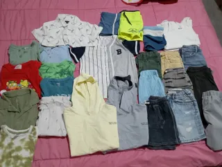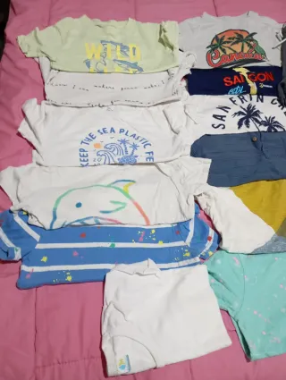 Lote de ropa para niño de 4-5 años 10 camisetas manga corta 2 camisa manga corta 3 camisetas interior manga larga sisa 9 pantalones cortos 3 bañadores Varias marcas