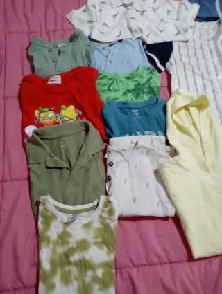Conjunto de ropa para niño de 3 a 4 años. 11 camisetas manga corta 2 camisas una amarilla otra vaquera oscuro 5 pantalón corto Varias marcas