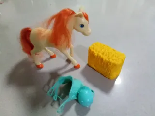 Pony Barbie con montura, casco y paja