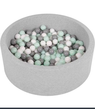 Piscina de bolas de color gris, muy blandita, ideal para el entretenimiento infantil. Lleva 200 bolas incluidas de varios colores, es desenfundable y lavable. - Piscina de tela gris. - Bolas de colores: blanco, gris y verde menta.