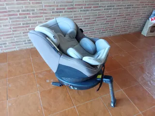 Silla de coche para bebé con sistema de giro 360 grados. - Tapicería en tonos grises. - Base giratoria. - Incluye reductor para recién nacidos.