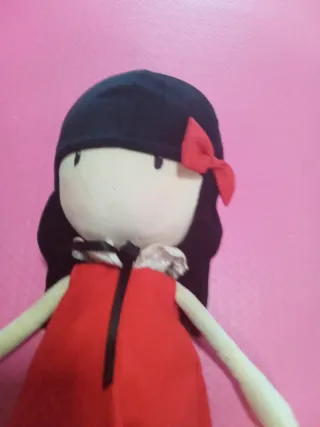 Muñeca Gorjuss grande de la marca Santoro, original y en excelente estado. - Vestido rojo con estampado de conejitos. - Medias a rayas blancas y negras. - Zapatos rojos. - Lazo rojo en el pelo.