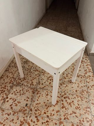 Pupitre infantil de madera de IKEA, ideal para que los más pequeños hagan sus tareas o jueguen. - Estructura de madera clara. - Superficie blanca. - Compartimentos de almacenamiento.