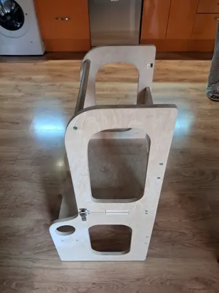 Trona de aprendizaje de madera, también sirve como pupitre. Ideal para que los más pequeños alcancen la encimera de la cocina o para usarla como mesa de estudio. - Fabricada en madera. - Diseño seguro y estable. Entrega en mano. Desgaste del uso (ver fotos)