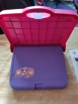 Maletín pupitre portatil con pinzas pillapapeles, portafolios y 2 compartimentos para echar colores, lápices y accesorios. El/la peke podrá llevar sus dibujos y colores guardados y poder dibujar o colorear en cualquier sitio. Medidas 36x34x7cms.