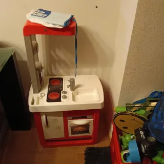 Divertida cocina de juguete para que los más pequeños de la casa se diviertan. - Incluye delantal. - Fogones, horno y fregadero. -Pupitre Se entrega en zona de Moratalaz o las tablas.(Madrid)