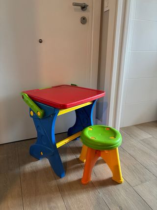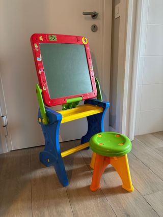 Pupitre con pizarra de la marca MOLTO, incluye taburete, precio original 55 euros.