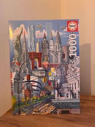 Puzzle de 1000 piezas de la ciudad de Nueva York. - Ilustración detallada de edificios icónicos de Nueva York. Incluye la Estatua de la Libertad, el Empire State y el Chrysler Building. - Diseño colorido