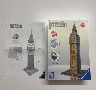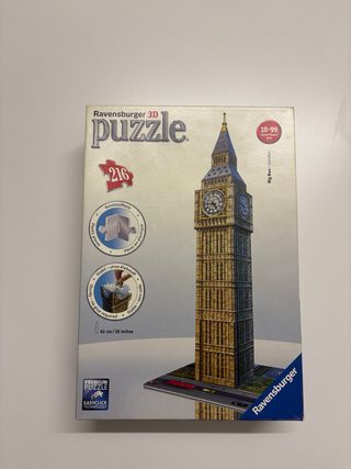 Puzzle 3D de Ravensburger que representa el icónico Big Ben de Londres. Incluye la caja original y las instrucciones. - Piezas de alta calidad. - Diseño detallado del Big Ben. - Ideal para coleccionistas y amantes de los puzzles. Tiene un desperfecto en una de las piezas. Ver última foto