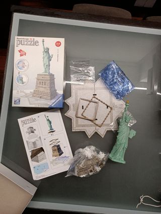 Puzzle 3D Ravensburger de la Estatua de la Libertad. - Incluye todas las piezas. - El puzzle está en perfecto estado, listo para armar. - Un regalo ideal para amantes de los puzzles. La base no se conserva, tampoco la caja original, aunque es un buen pasatiempo para montar durante el verano!