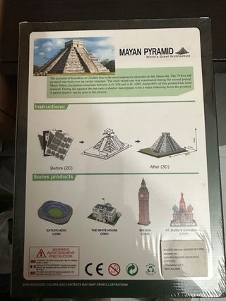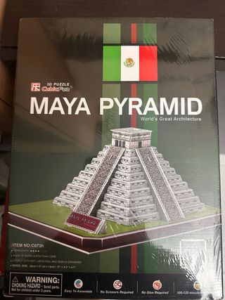 Puzzle 3D de la Pirámide Maya de CubicFun, una réplica de la Gran Arquitectura. - Modelo: C073h - Material: Papel y núcleo de espuma EPS. - Dimensiones del modelo: 28cm x 21cm x 12cm (11 x 8.3 x 4.7). - Requiere montaje fácil, sin necesidad de tijeras ni pegamento. - Tiempo estimado de montaje: 100-120 minutos.