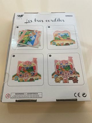 Puzzle 3D de Los Tres Cerditos con 58 piezas. Ideal para construir un escenario. - Incluye figuras de los personajes. - Tamaño ensamblado: 35cm x 25cm x 25cm. - Recomendado para mayores de 4 años.