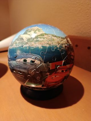 Puzzle esférico 3D con personajes de la película Cars 2. Ideal para los fans de Rayo McQueen. Se entrega montado. - Diseño tridimensional. - Imagen de los personajes de Cars.