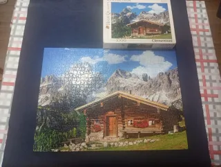 Puzzle de 1000 piezas de la marca Clementoni con una escena de montaña y un refugio. Imagen detallada de un paisaje montañoso. Incluye la caja original del puzzle. No le faltan piezas.
