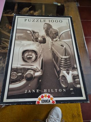 Puzzle de 1000 piezas con una imagen de Jane Hilton. - Imagen de dos coches clásicos y una pareja. - Marca Educa