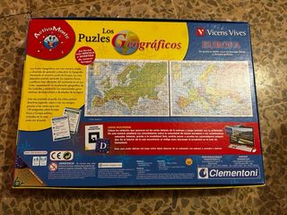 Puzzle de doble cara de Europa de la marca Vicens Vives. - Incluye mapa físico y político de Europa. - Contiene 104 piezas. - Incluye un juego de preguntas con 150 quizzes. - Juego Educativo + Juego Multimedia.