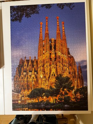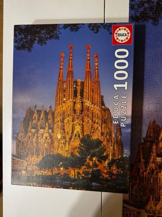 Puzzle de la Sagrada Familia de Barcelona, de la marca Educa, 1000 piezas.Imagen de la basílica iluminada al atardecer. Como nuevo.