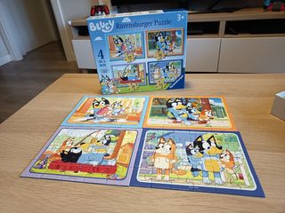 Pack de 4 puzzles de Bluey de la marca Ravensburger. - Incluye 4 puzzles con diferentes escenas de la serie. - Piezas de 12, 16, 20 y 24 piezas. - Recomendado para mayores de 3 años.