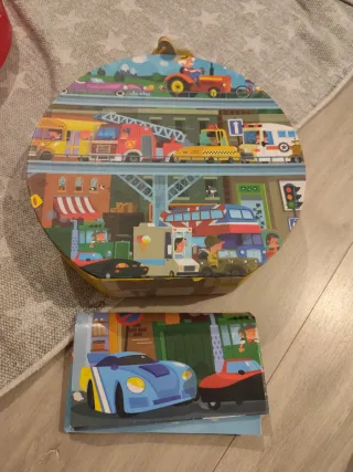 Puzzle infantil de la marca Janod con un diseño de vehículos de 100 piezas y escenas urbanas de 208 piezas! El rojo está perfecto de todo y el amarillo como se ve en la foto solo tiene la bisagra entre caja despegada Amarillo a 5€ Rojo a 9€