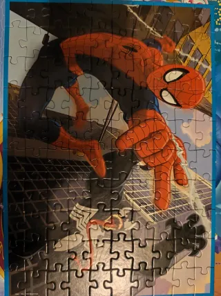 Puzzle de Spiderman de Clementoni con 104 piezas. Ideal para los fans del superhéroe. - Personaje: Spiderman. - Marca: Clementoni. - Número de piezas: 104. - Dimensiones del puzzle montado: 48,5 x 33,5 cm. - Edad recomendada: 6+. Opción de agrupar anuncios y de realizar envíos ordinarios por Correos