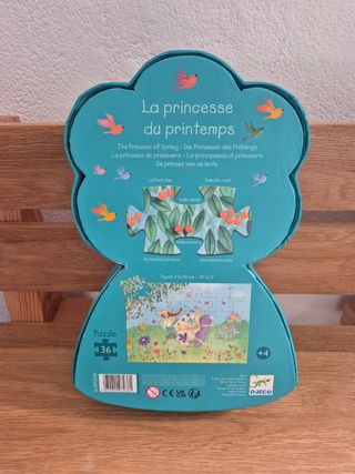Puzzle de la Princesa Primavera marca Djeco de 36 piezas. Descubre una muy hermosa ilustración de una princesa en un columpio en un prado de primavera. - Ideal para niñ@s a partir de 4 años. - Medidas aproximadas: 42 x 30 cm. - Perfecto estado.