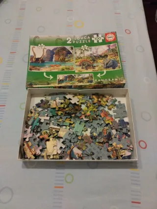 Cada puzzle tiene 100 piezas.dos puzzles - Puzzles de 100 piezas. - Temática de dinosaurios. - Marca Educa.
