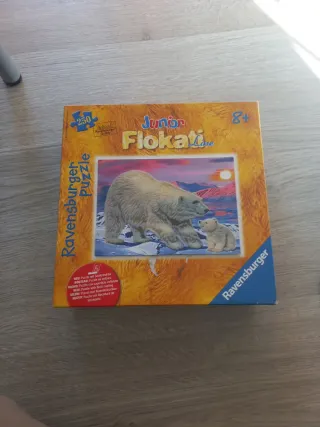 Puzzle de la marca Ravensburger, línea Flokati. Ideal para niños a partir de 8 años. - 250 piezas. - Ilustración de osos polares en un paisaje nevado. Son 2 puzzles el de la caja o otro de regalo de caballos
