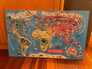 Puzzle para aprender países y continentes que se puede colgar es súper educativo de la marca janod está en buen estado como se ve en la foto