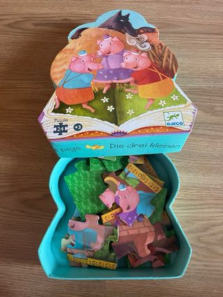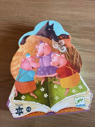 Divertido puzzle de la marca Djeco con la temática de Los Tres Cerditos. Ideal para los más pequeños. - 24 piezas. - A partir de 3 años. - Ilustración colorida y detallada.