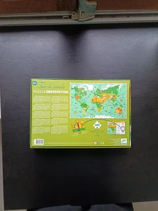 Puzzle de observación de Djeco con 200 piezas. Incluye un libreto. - Ilustración del mapa del mundo con animales y monumentos. - Diseñado para fomentar la observación y el aprendizaje. - Marca: Djeco.