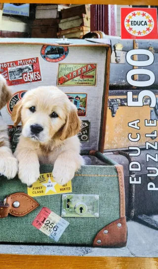 Puzzle de la marca Educa con 500 piezas que muestra adorables cachorros de golden retriever en maletas. Ideal para amantes de los animales y los puzzles. - 500 piezas. - Diseño de cachorros y maletas vintage. - Incluye etiquetas de viaje como 'Hotel Milan', 'Hotel Sirena', 'To Paris'. Los envíos solo se gestionan a través de Wallapop. Recogida en Valencia capital, calle Molinell, 14 (a 5 mins de la parada de metro de Benimaclet). Pregunta y te informaremos sin compromiso 🥰 Más libros y otros artículos en nuestro perfil y en la web aidabooks.org.