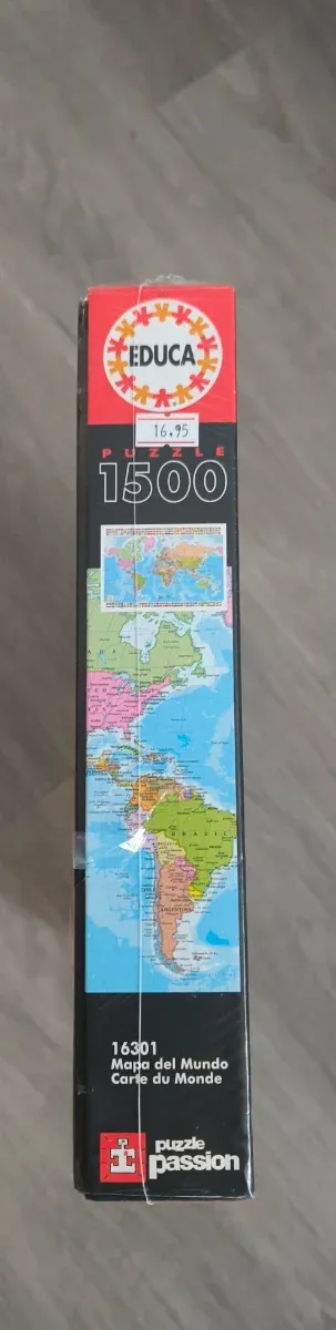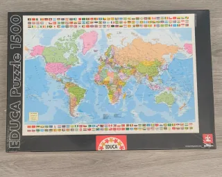 Puzzle de mapa mundi de la marca Educa con 1500 piezas. El artículo está nuevo y precintado con plástico. - Diseño detallado del mapa mundial. - Ideal para aficionados a los puzzles y la geografía.