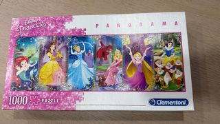 Puzzle panorámico de Disney Princess con 1000 piezas. - Ilustraciones de varias princesas Disney. - Marca Clementoni.