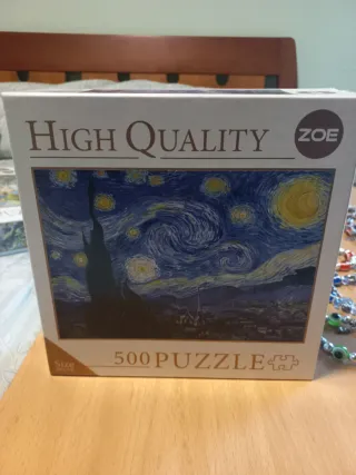 Puzzle de 500 piezas con la famosa obra La noche estrellada de Van Gogh. Ideal para coleccionistas y amantes del arte. Esta abierto pero no se ha montado nunca. - Imagen de alta calidad. - Marca: ZOE. - 500 piezas.
