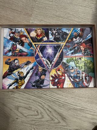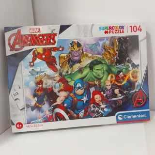 Puzzle de los Vengadores de Marvel, de la marca Clementoni. - 104 piezas. - Tamaño: 48,5 x 33,5 cm. - Recomendado para mayores de 6 años.