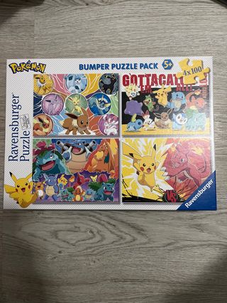 Pack de 4 puzzles de Pokémon de la marca Ravensburger. - Cada puzzle tiene 100 piezas. - Diseños variados con diferentes Pokémon. - Ideal para fans de Pokémon a partir de 5 años.