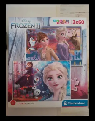 Pack de dos puzzles de 60 piezas cada uno, con imágenes de la película Frozen II de Disney. Ideal para los más pequeños. - Personajes: Elsa, Anna, Olaf y Sven. - Tamaño de cada puzzle: 27x19cm. - Marca: Clementoni.