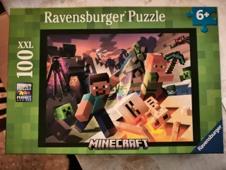 Puzzle de la marca Ravensburger con temática de Minecraft. Ideal para los fans del juego. - 100 piezas XXL. - Diseño de Minecraft con personajes y escenarios.