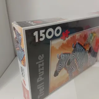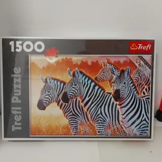 Puzzle de la marca Trefl con una imagen de cebras en un paisaje al atardecer. Ideal para aficionados a los puzzles. - 1500 piezas. - Diseño de cebras. - Marca: Trefl.