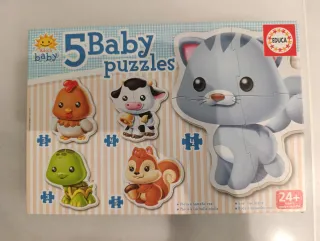 Set de 5 puzzles de animales de la marca Educa Baby, diseñados para los más pequeños. Cada puzzle presenta un animalito tierno y colorido. - Incluye 5 puzzles individuales. - Diseños de animales: gallina, vaca, tortuga, ardilla y gato. - Ideal para el desarrollo de habilidades motoras finas y reconocimiento de formas. - Edad recomendada: 24+ meses.