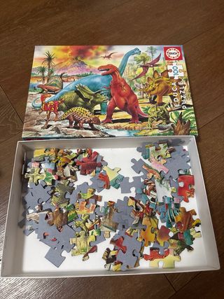 Puzzle de la marca Clementoni con temática de dinosaurios de Jurassic World. Incluye 104 piezas. - Diseño con cuatro dinosaurios diferentes. - Ideal para fans de Jurassic World. - Apto para mayores de 6 años. - El puzzle está en perfectas condiciones. Sólo la caja está un poco rota.