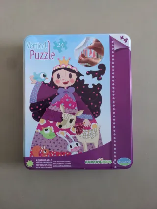 Puzzle vertical de la marca Eureka Kids con 24 piezas. El diseño presenta una princesa con animales. Se regala por la compra de 2 o más puzzles. Más puzzles, libros y juegos en mi perfil. Se hacen envíos por wallapop - 24 piezas. - Reutilizable y reposicionable. - Incluye instrucciones para volver a colocar las piezas.