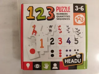 Puzzle educativo de la marca Headu para niños de 3 a 6 años. Fomenta el aprendizaje de números, cantidades y secuencias. - Incluye piezas con números del 1 al 5. - Cada número está asociado a una cantidad de animales. - Diseñado para el desarrollo cognitivo infantil.