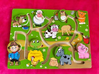 Divertido puzzle de madera con temática de animales de granja y laberinto. - Incluye piezas de animales como gallina, oveja, vaca, caballo, cerdo y gato. - Diseño colorido y educativo. - Ideal para el desarrollo de la motricidad fina y la resolución de problemas.