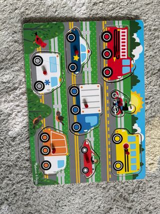 Divertido puzzle de madera con temática de coches y carreteras. Ideal para que los más pequeños jueguen y desarrollen su imaginación. - Piezas de madera. - Incluye coches de juguete.