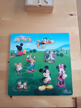 Divertido puzzle de madera con los personajes de Mickey Mouse Clubhouse. Ideal para los más pequeños. - Piezas con figuras de personajes. - Base con siluetas para encajar. - Diseño colorido y atractivo.