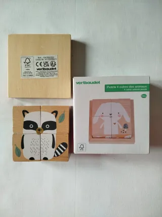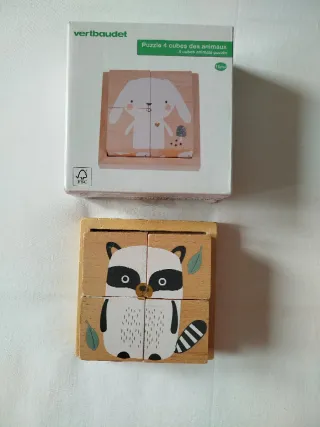 Puzzle de 4 cubos de madera de la marca Verbaudet con diseño de animales. Ideal para los más pequeños. - Material: Madera. - Diseño: Animales. - Marca: Verbaudet. - Certificación FSC.