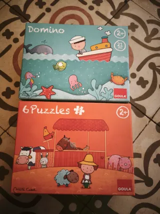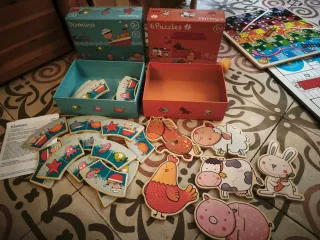 Set de juegos infantiles de madera. - Incluye un juego de dominó con temática marina. - Incluye un set de 6 puzzles con animales de granja. - Material: Madera. -Jugueted edición ilustrada por Marta Cabirol - Completo y con instrucciones . Djeco, Janod, Vilac, Lilliputiens, Hape, Haba, Grimms, Montessori, Waldorf, Goula, Goki.