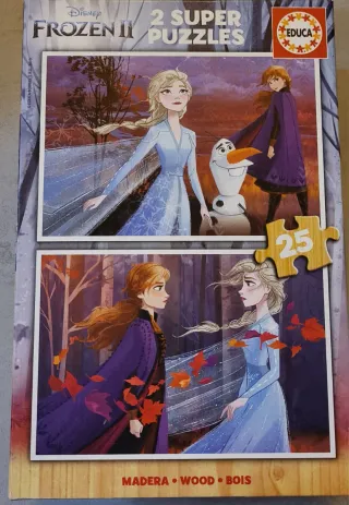 Pack de dos puzzles de madera de 25 piezas cada uno de Frozen II. Marca Educa. Para 4-5 años aprox. Mantiene caja original.