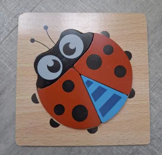 Divertidos puzzles de madera para los peques de casa. - Piezas de madera. - Diseño colorido de mariquita. - Base de madera. Los 5 juntos a 8€.